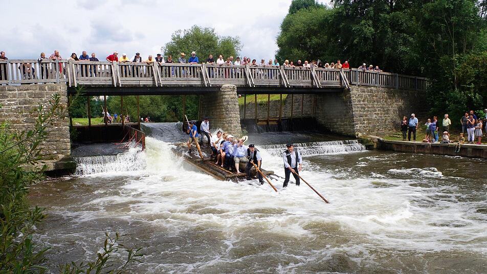 Rund um das Flößermuseum herrschte in Unterrodach Hochbetrieb. Viele Schaulustige verfolgten die Fahrten auf der wild schäumenden Rodach.