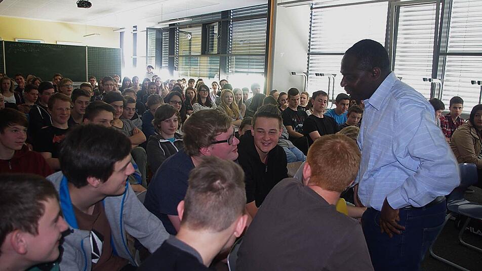 Keine fünf Minuten brauchte Roberto Turyamureeba bei seinem Besuch an der Siegmund-Loewe-Schule in Kronach, um die Neuntklässler für sich einzunehmen.