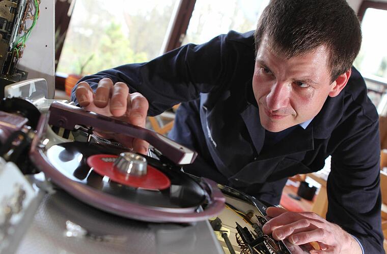 Was seine Arbeit anbelangt, ist Peter Kleylein aus Marktrodach ein Pedant. Begriffe wie "mühevolle Kleinstarbeit", "keine Bastelei", "Spezialverfahren" und "keinerlei Massendurchlauf" fallen, wenn er beschreibt, worauf er Wert legt. Der 32-Jährige blickt dabei ernst drein. Anders, betont er immer wieder, können alte Musikboxen gar nicht restauriert werden.