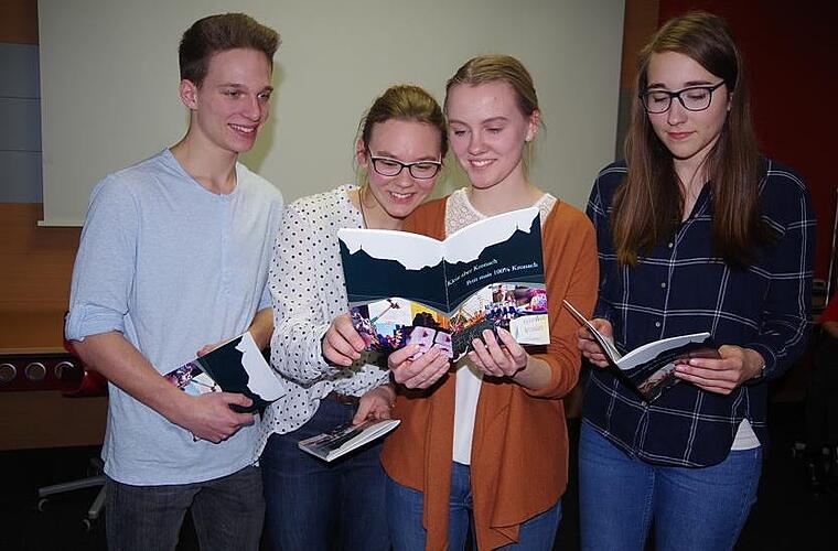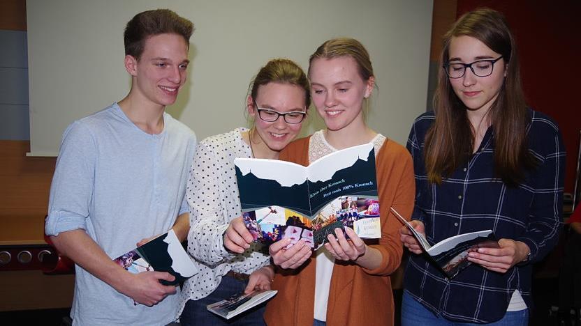 Eine große Unterstützung war die Austauschschülerin Clémence, die die französischen Texte überprüft und verbessert hat. Sehr stolz auf die engagierten Schüler zeigten sich Matthias Schneider namens der Schulleitung, Seminarleiterin Daniela Millitzer und Kronachs Zweite Bürgermeisterin Angela Hofmann. "Das ist ein Grund, warum wir P-Seminare so lieben. Ihr seid ein Paradebeispiel dafür, wie jeder seine eigenen Qualitäten einbringen kann", lobte Schneider. In den eineinhalb Jahren hätten sie etwas Bleibendes geschaffen und das in sie gesteckte Vertrauen zu 100 Prozent zurückgegeben. Dem konnten sich Millitzer und Hofmann nur anschließen. Die sehr liebevolle Gestaltung des Reiseführers zeige, so die Zweite Bürgermeisterin, dass sich die jungen Leute mit ihrer Heimat identifizierten und ihnen diese etwas wert seien. Ihre professionelle Vorgehensweise stimme mit den Abläufen in der Wirtschaft überein. Abschließend betonte sie, dass sie beziehungsweise die Stadt für neue Ideen jederzeit dankbar seien.