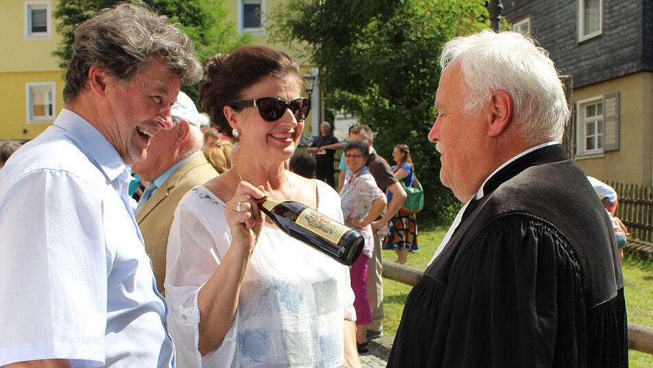 Nur fünf Jahre später sieht es nun ganz anders aus: Mit seiner Zeit als Pfarrer in Ludwigsstadt prägte er eine ganze Epoche, hatte Bischoff doch hier an seiner letzten Pfarrstelle "aus der Fülle seines Wissens und seiner Fähigkeiten schöpfen können", so Dekanin Richter über ihren Stellvertreter. "Ich bin sehr froh, dass die Regionalbischöfin Dorothea Greiner Pfarrer Bischoff damals davon überzeugen konnte, nach Ludwigsstadt zu kommen." Und wie wohl ganz Ludwigsstadt bedauerte sie, dass er - wegen seiner Enkel - seinen Ruhestand nicht noch um zwei Jahre hinauszögern wollte, um in Ludwigsstadt verlängern. Zugleich weitete sie ihr Bedauern auch auf Ehefrau Elisabeth Bischoff aus, die sich der Aufgabe als Pfarrfrau bewusst gestellt habe.