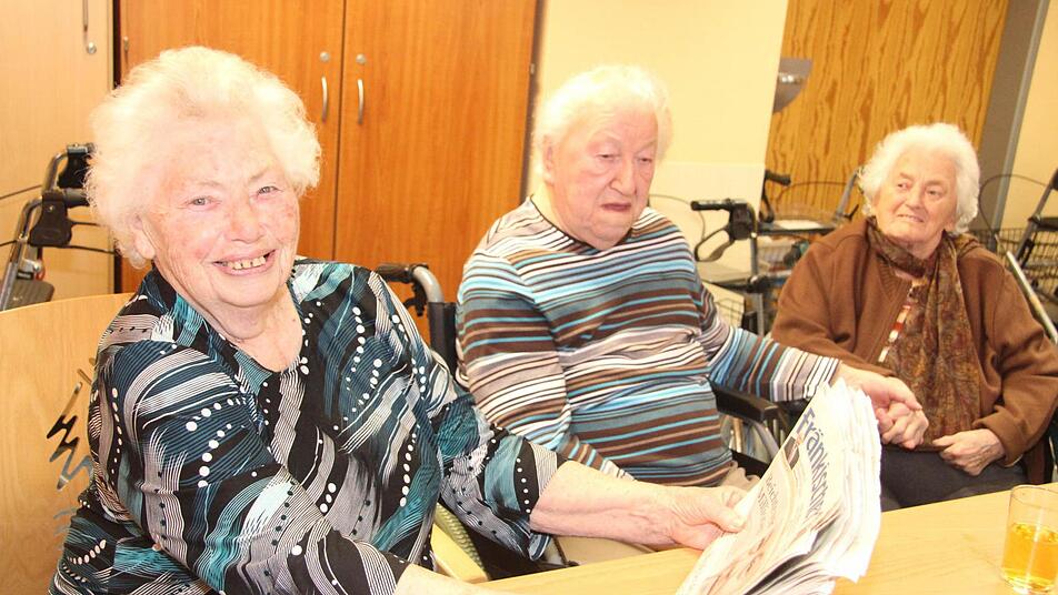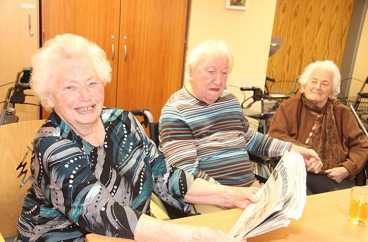Indes verlangt Margarete Engelhardt (82) nach ihrer Zeitung. Sie ist seit einem Vierteljahr in dem Pflegeheim und legt größten Wert auf ihre tägliche Lektüre. Babette Hanusa (90) hält die Hand von Karola Hilk (88). Die beiden sind dicke Freundinnen. "Wir waren früher Nachbarn.