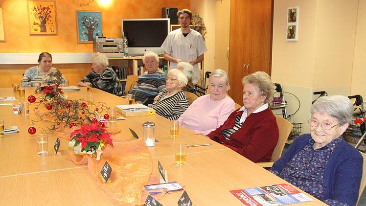 Vor allem bei den zahlreichen Angeboten fehlt sie nie. "Ich mache beim Quiz mit, aber ich weiß nicht immer alles. Was der alles wissen will", erzählt Georgine Waglau. Doch auch wenn sie eine Frage von Azubi Max Thiele nicht beantworten kann, sie strengt ihre grauen Zellen an und genießt die Unterhaltung. "Ich rätsele auch und ich mache bei der Gymnastik mit. Und vor allem macht mir das Kochen Spaß", erzählt die 91-Jährige mit fester Stimme. "Ich hab schon so meine Wehwehchen, aber man darf es sich nicht so anmerken lassen", sagt Waglau und fühlt sich in "Leben am Rosenberg" sichtlich wohl. Insgesamt sind in der Pflegeeinrichtung direkt in der Frankenwaldklinik 29 weitere Bewohnerinnen und drei Bewohner untergebracht. Die älteste ist 94 Jahre alt, die jüngste ist gerade einmal 57 Jahre. "Ich hatte drei Herzstillstände und ich habe epileptische Anfälle.