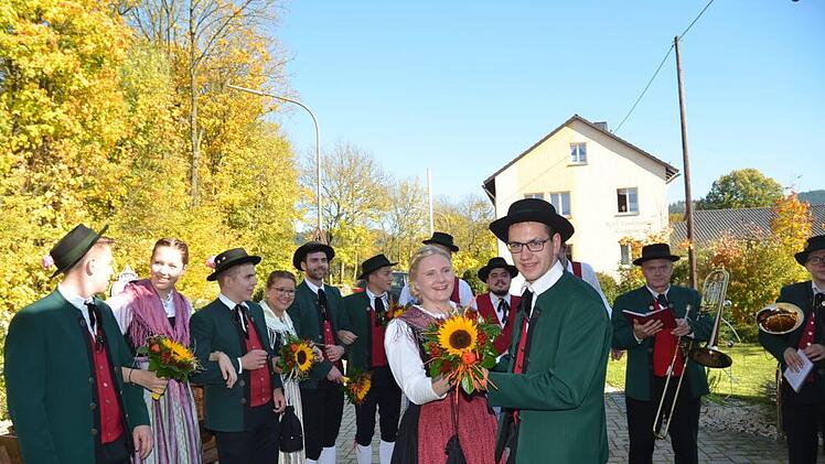 Einige Zeit nach dem Gottesdienst, den Pfarrer Hans-Michael Dinkel zelebrierte und der von der Gesangsgruppe des Volkstrachtenvereins umrahmt wurde, zogen die Zechburschen durch das Dorf, um ihre Madla abzuholen. Es sind heuer sechs Einhaltpaare und drei Kellner.