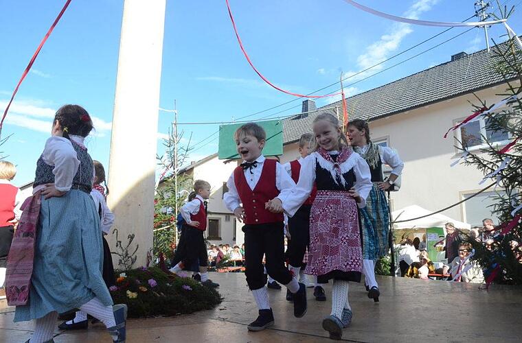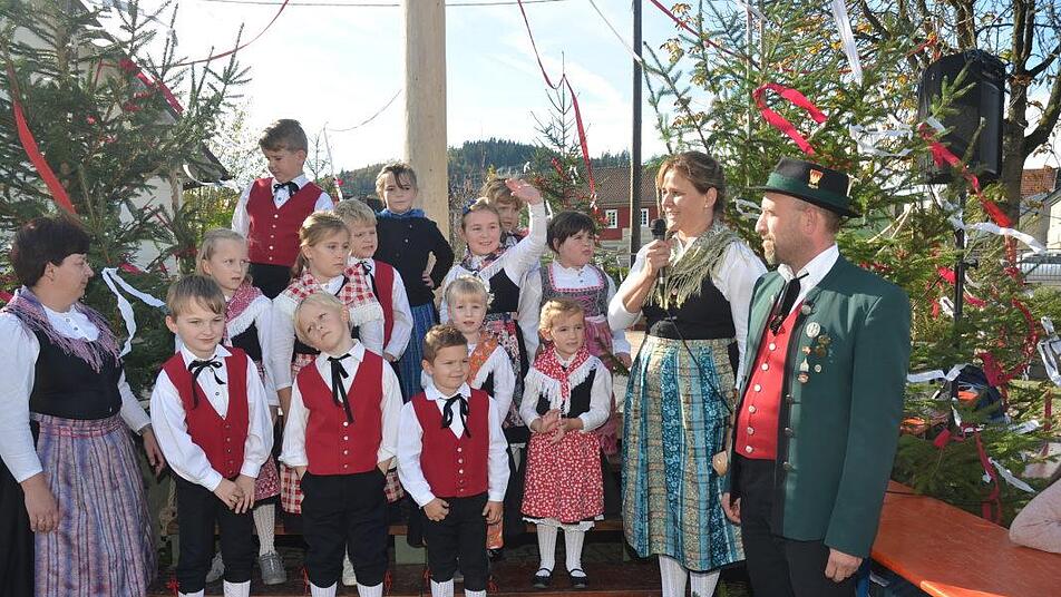 13 Kinder, unter Betreuung von Bettina Rubel und Regina Hergenröther, erfreuten Eltern und Großeltern sowie Gäste mit ihrer farbenfrohen Tracht und führten mit Charme und Spaß, ja sogar mit Begeisterung ihre vier einstudierten Tänze vor und erhielten viel Beifall.