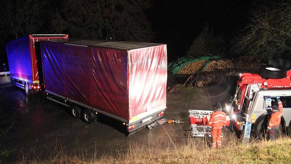 Mehrere Stunden war am Donnerstagabend die Straße zwischen Zeyern und Roßlach (Kreis Kronach) blockiert, weil ein polnischer Lastzug in den Serpentinen fest saß. Der Fahrer war mit seinem Gespann von seinem Navi auf die kurvige Strecke geleitet worden.