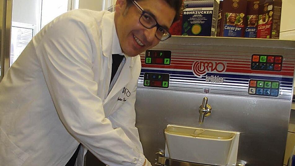 Am Samstag wird sich dort ein ganz besonderes Eis befinden, das von ihm am Samstagvormittag frisch hergestellt wird. Die Zubereitung des "fairen" Zartbitter-Eises wird auch für Roberto eine - wie er sagt - "spannende Premiere".