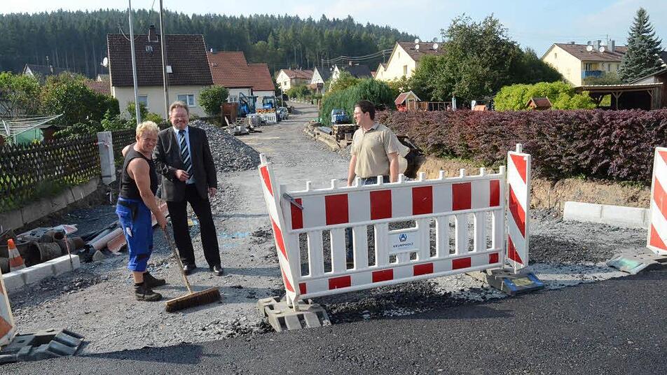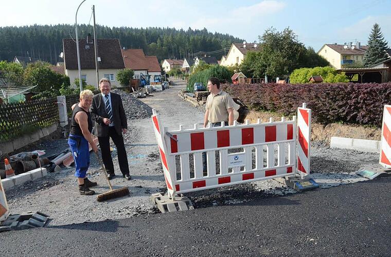 Bei einer Baustellenbegehung informieren Bauamtsleiter Andreas Schorn und Bürgermeister Hans Pietz, dass die gesamte Baumaßnahme bis Ende November abgeschlossen sein soll. Die Gesamtkosten werden etwa 600 000 Euro betragen. Bei dieser Summe rechnet die Marktgemeinde mit Fördermitteln aus dem Finanzausgleich in Höhe von etwa von 130 000 Euro. Auch die Bayernwerke schlossen sich kurzfristig der Baumaßnahme an und verlegten neue 20-Kilovolt-Leitungen in den Untergrund, nachdem die Straße ohnehin aufgebaggert war.