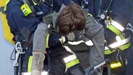 Völlig verqualmte Räume Obwohl an mehreren Einsatzstellen gleichzeitig hart und vor allem schnell gehandelt werden musste, wurde Übersicht und Ordnung gewahrt. Beim Abnehmen des Pkw-Dachs zur Rettung der eingeklemmten Person, beim Aufbrechen der Eingangstür durch den Atemschutztrupp, der sich mit Wärmebildkamera in die völlig verqualmten Räume vortasten musste, und beim Besteigen des circa zehn bis zwölf Meter hohen Dachs über eine dreiteilige Schiebeleiter flossen etliche Schweißperlen. Doch es dauerte nicht lange, dann konnten die vermissten Personen gerettet und an den BRK-Rettungsdienst übergeben werden.
