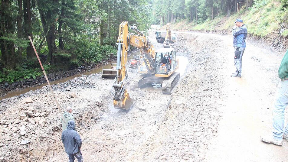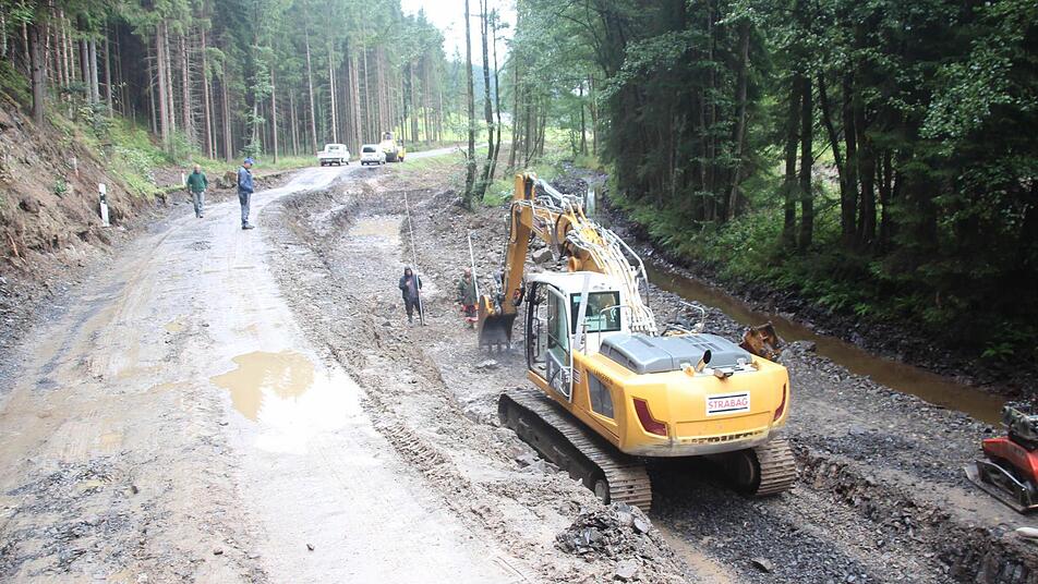 Die Arbeiten für den Neubau der Kreisstraße 3 sind in vollem Gange. Der Forstbetrieb Rothenkirchen fällt Bäume. Der Kremnitzfluss wird umgeleitet, damit an der ehemaligen Kugelmühle eine Stützmauer errichtet werden kann. In einer Bilderstrecke geben wir einen Einblick in die Arbeiten.