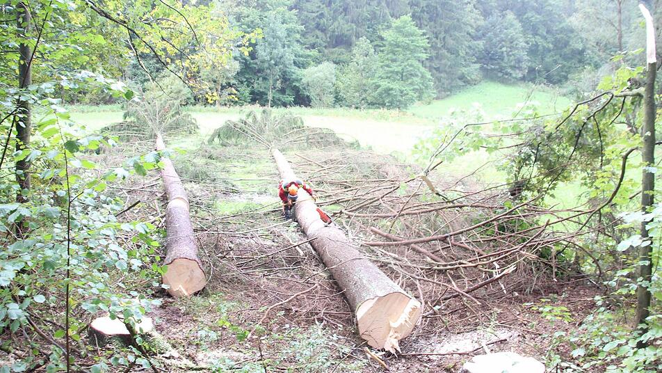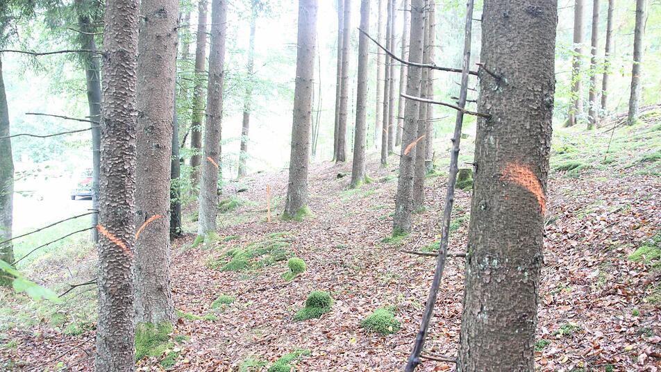 Die Rodungsarbeiten für den Neubau der Kreisstraße 3 zwischen der Fehnenschneidmühle und Gifting laufen auf Hochtouren. Nachdem private Waldbesitzer bereits Bäume entfernt haben, sind jetzt die Bayerischen Staatsforsten dran. Auf der Felsnase und am Hang bei der Felsmühle müssen viele Stämme weichen. Damit später bei Schneebruch oder Windwurf keine Bäume über die neue Straße fallen, wird die Schneise etwas breiter angelegt als es für den reinen Straßenbau nötig wäre. Weil die "Anwand", der Waldmantel, später wegen der neuen Straße weg ist, wäre der restliche Waldbestand in den ersten Jahren instabil. "Gerade freigestellte Fichten, die vorher im Bestand waren, stellen ein Sicherheitsrisiko dar", verdeutlichte Peter Hagemann, Leiter des Forstbetriebs Rothenkirchen. Die Flächen zwischen der neuen Straße und dem Hochwald werden durch Mischbaumarten aufgeforstet, wenn nicht schon Laubholz dort steht. "Dabei spielt die Tanne eine wichtige Rolle, weil sie den Hang verfestigt. Aber auch Bergahorn wird eingebracht, weil er wurzelintensiv ist", berichtet Peter Hagemann.