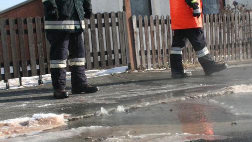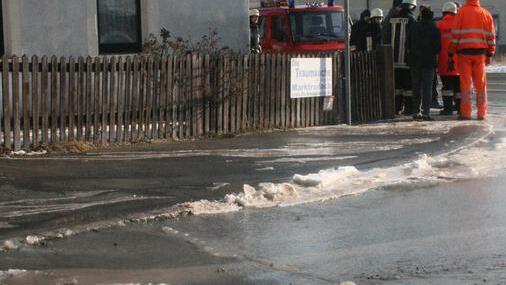 Zum Glück konnte das aus mehreren Stellen des Ruppenwegs austretende Wasser über zwei Kanalschächte an der Bundesstraße abfließen. Damit hielt sich die Eisbildung in Grenzen. Im Laufe des Sonntags wurde die Straße aufgegraben und das Leck in der Hauptleitung der Rodacher Gruppe wurde abgedichtet.