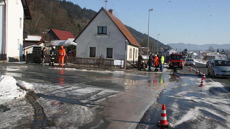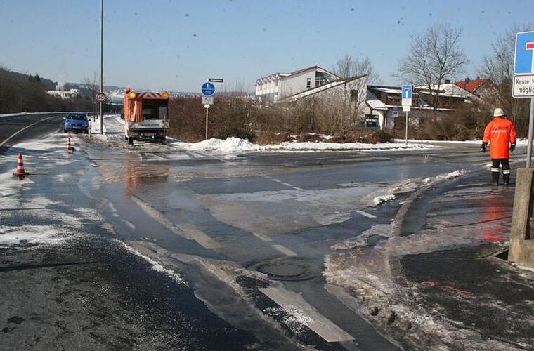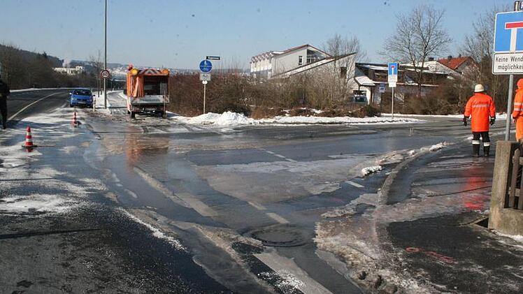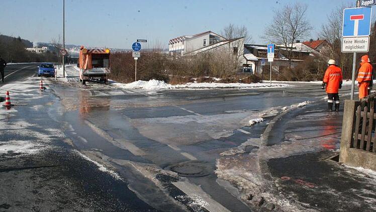 Einen Wasserrohrbruch gab es am Sonntag zwischen Ruppen und Kronach. Die Bundesstraße 173 musste deshalb wegen Glatteis für mehrere Stunden halbseitig gesperrt werden.