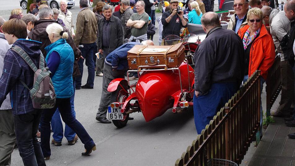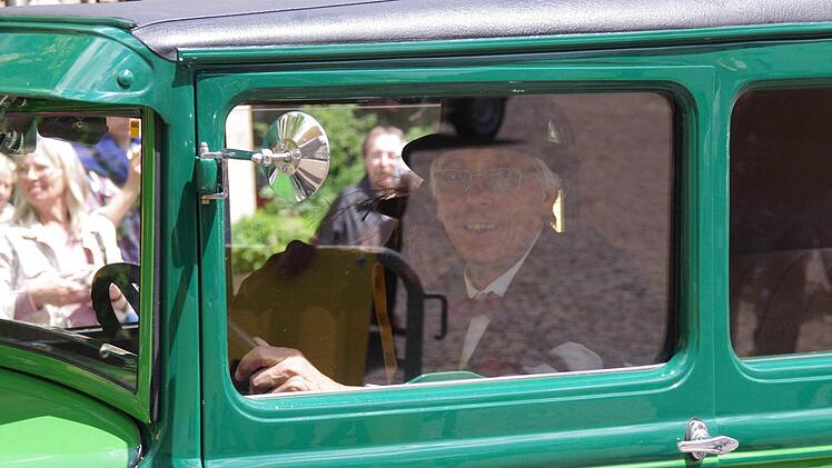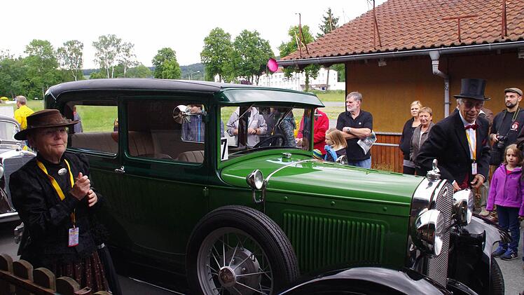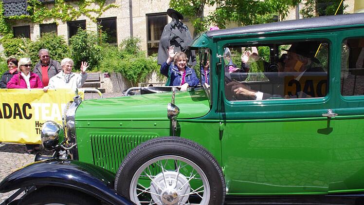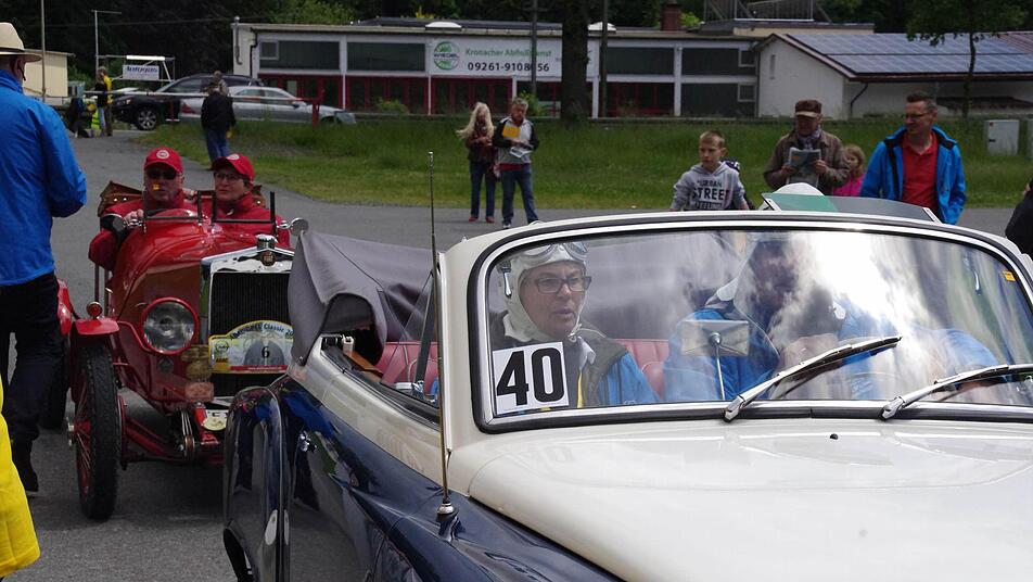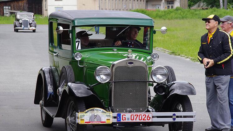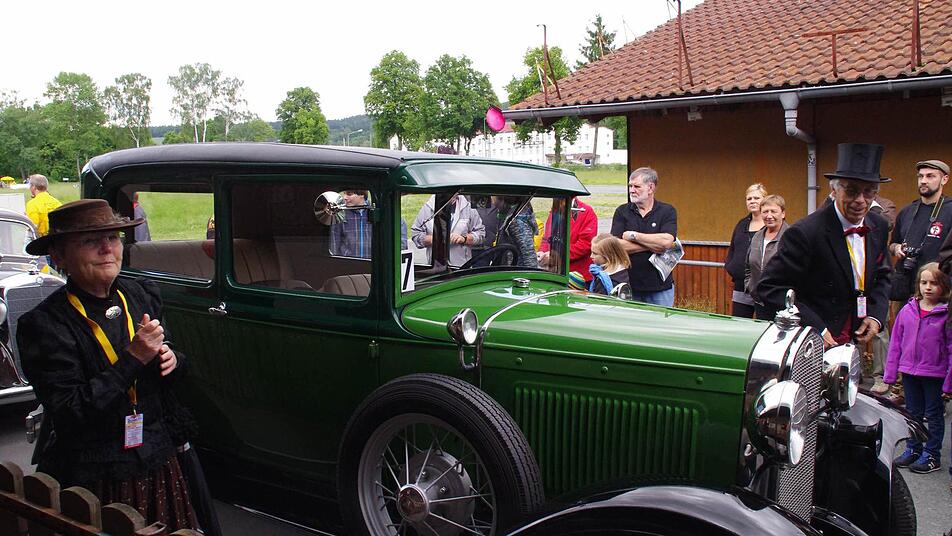 Mit viel Jubel und staunenden Blicken wird Friedrich Schleicher in der "Boxengasse" in Empfang genommen. Nicht etwa, weil er mit rasender Geschwindigkeit über den Asphalt gedonnert ist, sondern weil er ein Prachtstück auf den Schützenplatz in Kronach gesteuert hat. 127 Kilometer haben der Mann mit dem Zylinder und seine Frau im grünen Ford Modell A an diesem Tag schon hinter sich gebracht; nach einer kurzen Pause muss das Gefährt aus dem Jahr 1930 nochmal die gleiche Distanz meistern.