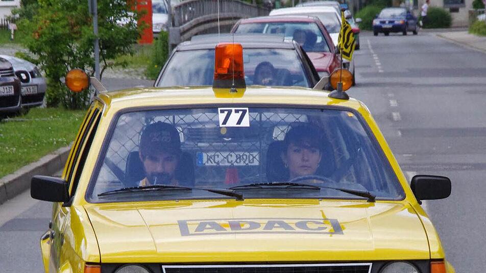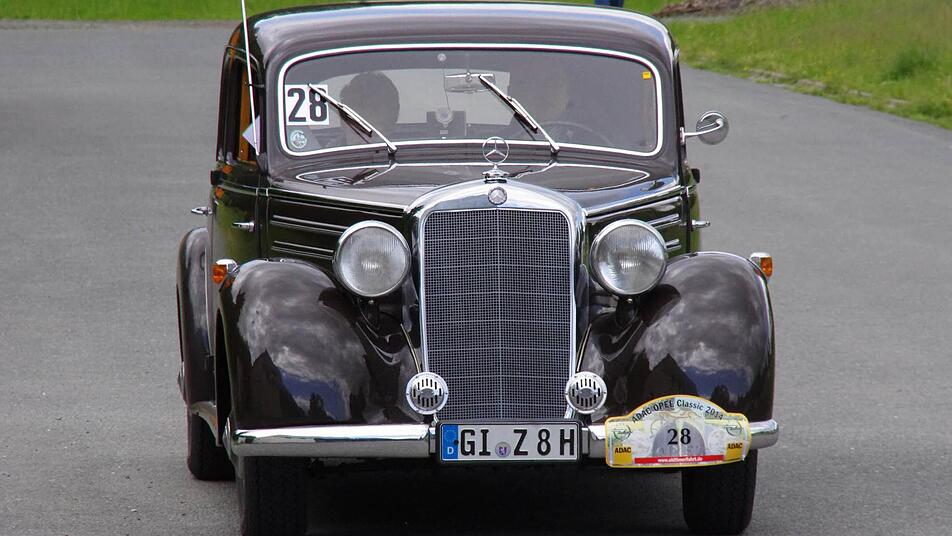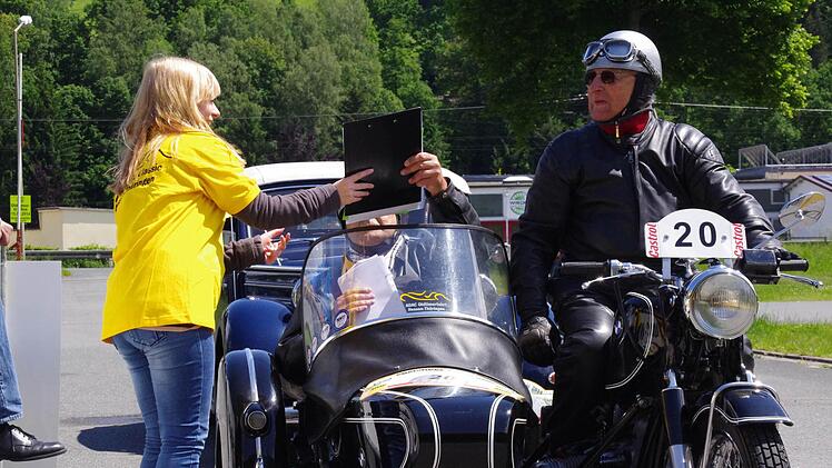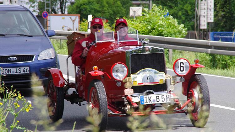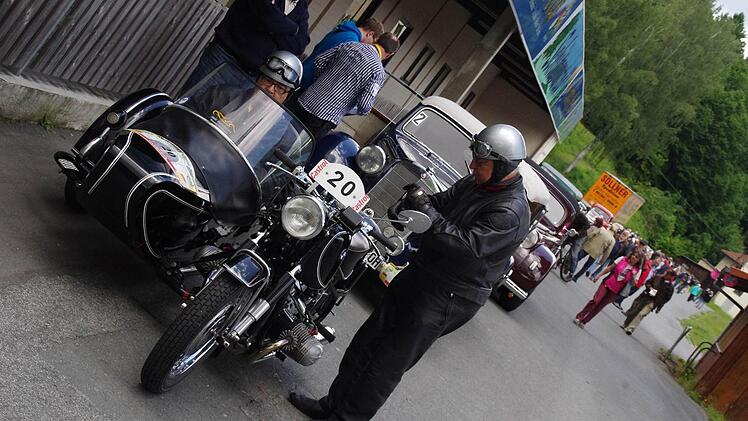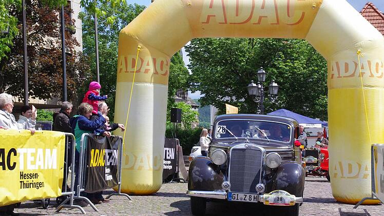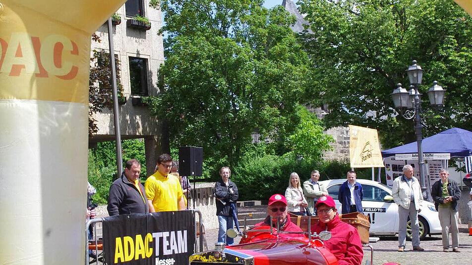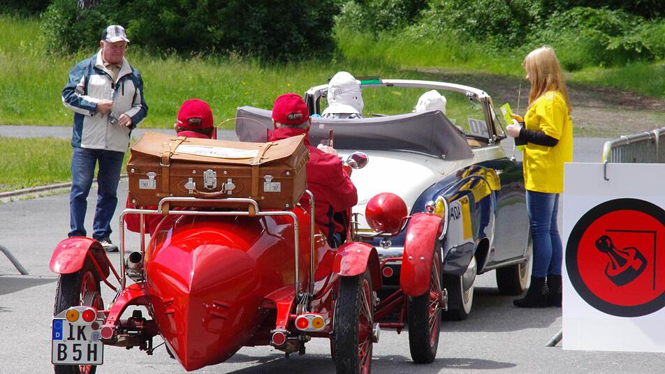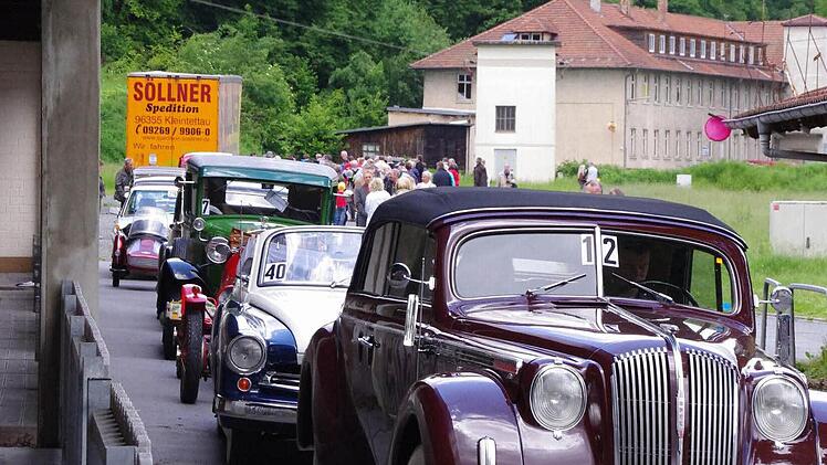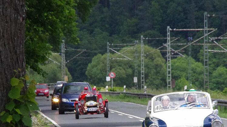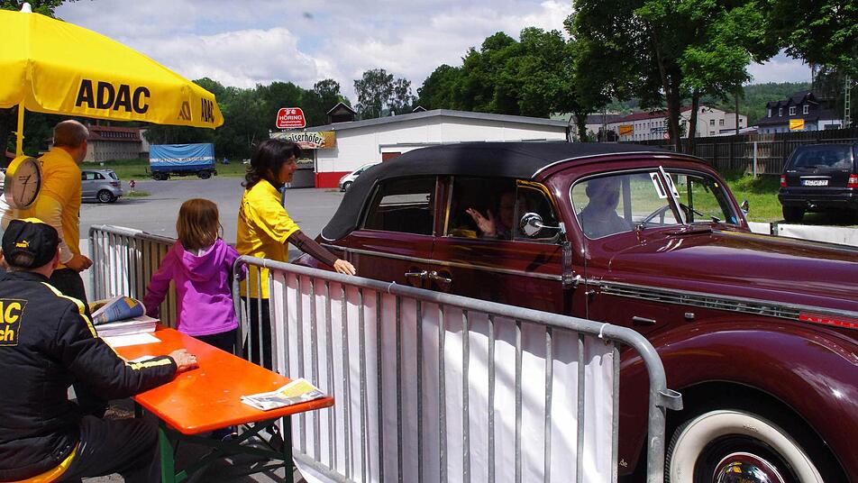 Derweil erreichen immer mehr Fahrzeuge des "rollenden Museums" die Kontrollpunkte am Schützenplatz und in der oberen Stadt. Dank einer guten Zusammenarbeit mit dem AC Kronach und der Stadt Kronach, laufe der Abstecher nach Nordbayern reibungslos, zieht Harald Rabe von der Fahrtleitung eine Zwischenbilanz. Und die Kronacher verfolgen begeistert die im Minutentakt passierenden Oldtimer.
