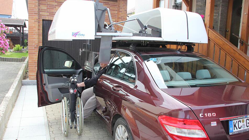 Der geheimnisvolle weiße Kasten auf dem Dach des Mercedes von Erika Limmer sorgt jedes Mal für Aufsehen, wenn die Frau aus dem Auto aus- oder einsteigt. Denn die Mitwitzerin ist Rollstuhlfahrerin und aus dem Dachkoffer wird ihr vor dem Aussteigen aus dem Auto wie von Geisterhand der faltbare Rollstuhl gereicht oder vor der Abfahrt in der Box verstaut.