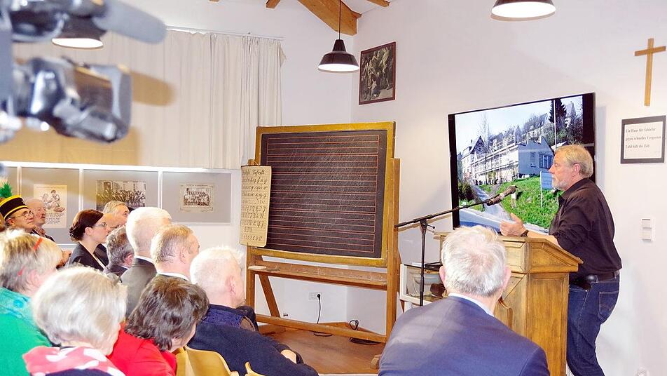 Die spektakuläre Rettung eines stanniolgeschmückten Schiefergiebels aus Zeyern aus dem Jahr 1673 zeige, dass das Erreichte laufend erweitert werde. In Sachen Technik sei das Neueste gerade gut genug. Noch wichtiger als mediale Hilfen seien aber die Menschen hinter dem Museum. Viele Freiwillige hauchten dem Museum Leben ein. Herausstellen müsse er die Geologisch-Heimatkundlichen Arbeitsgemeinschaft (GHAG) als ideelle und geistige Trägerin.