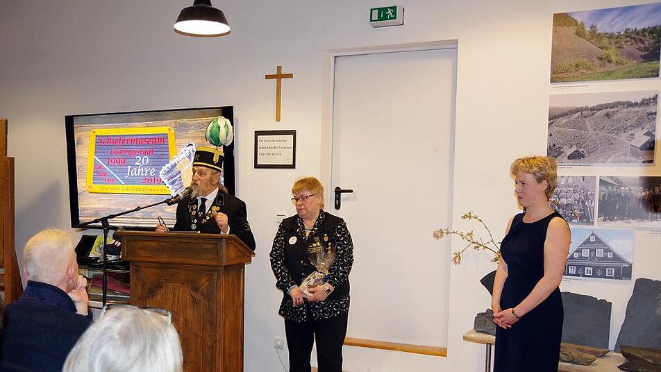 Zum Jubiläum gratulierte auch der Vorsitzende des Traditionsvereins Thüringer Schieferbergbau Lehesten, Helmut Färber. Dieser hob die durch das Museum erfolgende touristische Belebung des Rennsteigs hervor.