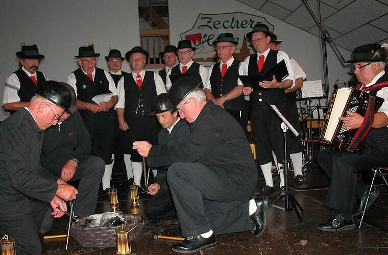 Ein voller Erfolg war aber auch der Auftritt des thüringischen Trachtenvereins Schumlach-Lindenberg mit Marko Thieg im Bergmannskleid, ergänzt mit dem sogenannten "Arschleder", das einst die Bergleute bei ihrer schweren Arbeit vor Nässe schützte. Nicht von ungefähr gab es für den Schwertertanz, musikalisch unterstützt von der Bergmannskapelle, einen Riesenbeifall. Das "Knappenspiel" des Heimat- und Trachtenvereins Haig in alter Stärke, das förmlich unter die Haut ging, war eine weitere Attraktion mit Gänsehaut-Feeling.