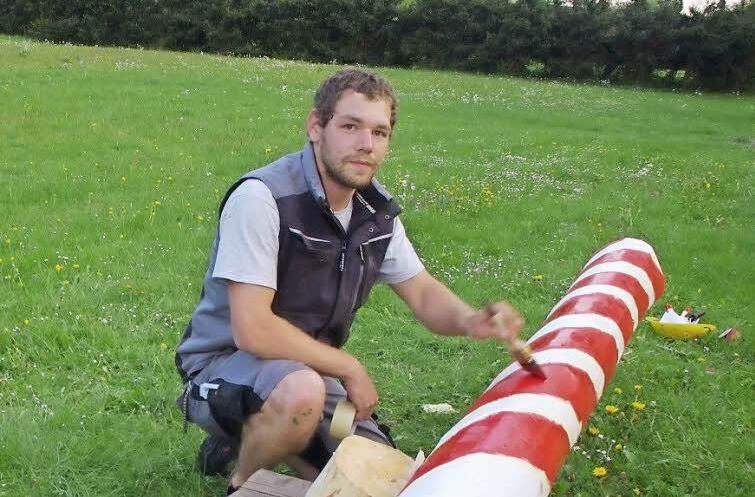 Der Maibaum wird an einem geheimen Ort gelagert, den nur "Eingeweihte" kennen. Damit konnte man bis jetzt erfolgreich verhindern, dass der Baum von potenziellen Dieben der Nachbarorte geklaut wird. Hier erfährt der Baum nun den letzten Feinschliff. Zum ersten Mal wird er heuer bemalt. Neu ist auch, dass die Wappen der örtlichen Vereine am Baum angebracht werden. Stolze 14 Vereine machen mit. "Wir haben ihnen die Idee bei einer Sitzung der Vereinsgemeinschaft vorgestellt und alle waren gleich dabei. Ich finde, das gibt ein gutes Bild ab", freut sich Jakob.