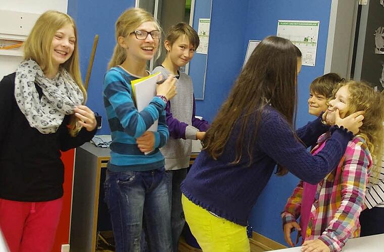 Coole Abwechslung "Die Großen könnten ruhig öfters kommen, uns etwas vorlesen oder gemeinsam mit uns lernen", zeigten sich dann auch die Drittklässler vom etwas anderen Schulvormittag begeistert. Dieser sei eine schöne Abwechslung zum üblichen Unterricht und richtig "cool" gewesen. Auch die Gymnasiasten hatten viel Freude am Kooperationsprojekt. "Das hat Spaß gemacht. Die Kleinen haben sich viel Mühe gegeben, teilweise waren sie beim Standbild richtig professionell", lacht Emma, die den Krimi mitgeschrieben hat. Anna und Sophia gehörten zur Malergruppe, die u. a. für Bilder und Klappentext zuständig war.