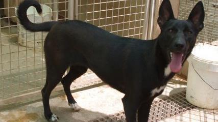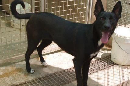 Die schwarze Podenco-Mischlingshündin Azahar stammt aus dem spanischen Partnertierheim der Kronacher. Sie wurde mit ihren neun Geschwistern als Welpe in einem Abwasserkanal gefunden und gerettet. Nur Azahar und ihr Bruder Lobezno, der auch im Tierheim