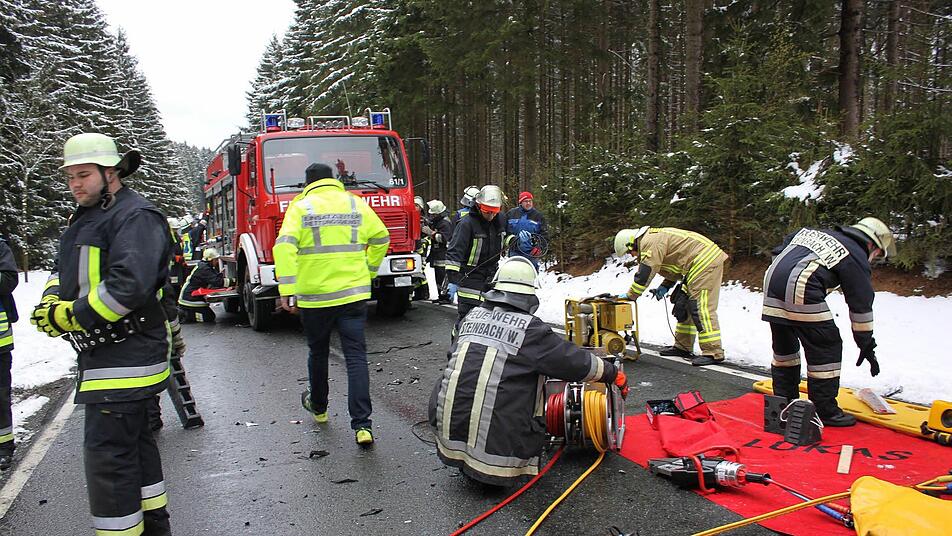 Windheim. Aus noch ungeklärter Ursache kam es zur Kollision zweier Pkw. Der 74-jährige Kraftfahrer, der von Windheim Richtung Buchbach fuhr, musste mit Rettungsspreizer bzw. Rettungsschere aus seinem Fahrzeug befreit werden. Eine junge Frau war Richtung Windheim unterwegs.