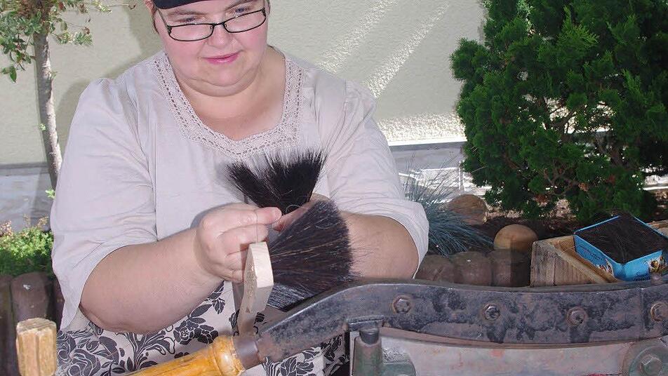 Und was gibt es da nicht alles zu bestaunen: Besenbinderin Kerstin Weber aus Haßfurt stellt gerade mit Eva und Hanna einen "Kitzel-Pinsel" aus Ziegenhaar her. Das kleine Kunstwerk eignet sich nicht nur zum Kitzeln, sondern auch hervorragend zum Abstauben. Seit Juli 2009 ist die Hassfurterin auf mittelalterlichen Märkten unterwegs mit dem Ziel, den Menschen ihren Beruf vorzustellen. Bereits mit 18 Jahren begann sie, Besen und Bürsten auf traditionelle Art herzustellen.