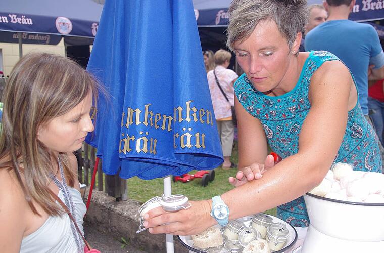 Die Marktrodacherin Mandy Müller gab am Samstag beim Dorffest einen Einblick in ein außergewöhnliches Handwerk, nämlich das Seifesieden. Die Marktrodacherin hat eine kleine Manufaktur, in der sie ihre Schätze herstellt.