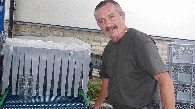 Weiter geht es am Stand der Druckerei Hubert Waldhier. Der Thurnauer bedruckt individuelle Servietten und Bierdeckel, darunter auch einen Bierdeckel zum 675-jährigen Bestehen von Hesselbach. "Ich erstelle traditionell alles im Handsatz mit beweglich Lettern, also mit einzelnen Bleibuchstaben", erklärt Waldhier. Für seine Druckvorführung kommt der "Boston-Tiegel" zum Einsatz, der bereits 100 bis 120 Jahre alt und zwischen 90 bis 100 Kilogramm schwer ist.