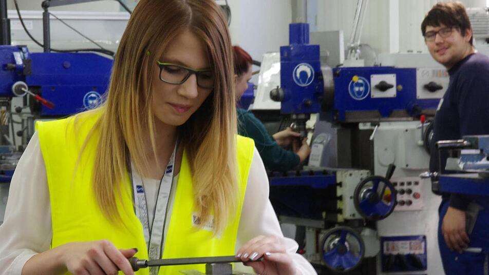 "Wir werben auch dafür, dass Mädels reinschnuppern. Es ist nicht mehr so wie früher, dass das typische Männerberufe sind. Diese Barriere ist heute aufgebrochen", stellt die Projektleiterin Aus- und Weiterbildung, Detlind Breuer, fest. Ihre bisherigen Erfahrungen zeigen, dass sich die Frauen nicht vor den männlichen Kollegen verstecken müssen. Auch Tschernitschek ist überzeugt, dass Mädchen die Aufgaben als Werkzeugmechaniker ebenso gut bewältigen können wie Jungs. Oft seien die jungen Frauen sogar motivierter. "Die hängen sich da richtig rein."
