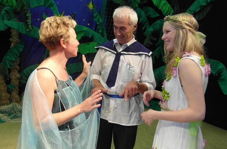 Eine davon ist die Tourismusbeauftragte Manja Hünlein. Sie spielt den Luftgeist "Ariel". Als Geist hat die 37-Jährige die Aufgabe, Prospero zu dienen. Prospero ist der abgesetzte, rechtmäßige Herzog von Mailand. Der lässt mit Ariels Hilfe vor seiner Insel ein Schiff im Sturm stranden, an dessen Bord sich Prosperos Bruder Antonio befindet. Ebenfalls an Bord ist Alfonso, der König von Neapel, der beim Sturz Prosperos mitgeholfen hat. Als "Luftgeist Ariel" muss Manja Hünlein viel sprechen.