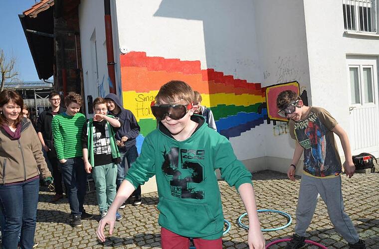 Dies wurde durch verschiedene Stationen verdeutlicht. Abschluss war ein Hindernis-Parcours, der mit einer Rauschbrille zu durchlaufen war. Die Schüler stellten sofort den Einfluss des Alkohols auf die Sinne und die Motorik fest - und waren beeindruckt von dem Erlernten.