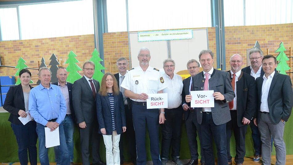 Erfreulich viele Ehrengäste waren neben 500 teilnehmenden Viertklässlern aus allen Grundschulen des Landkreises gekommen. Siegbert Jakob (Fachberater für Verkehrserziehung des staatlichen Schulamtes Kronach), der Motor und Organisator des Projektes mit Unterstützung von Förderlehrer Andreas Rentsch, GS Teuschnitz, freute sich außerordentlich über das große Interesse und den Zuspruch. Er begrüßte sieben Bürgermeister, Thomas Löffler (Steinbach am Wald), Hans Pietz (Pressig), Rainer Detsch (Stockheim), Zweite Bürgermeisterin Angela Hofmann (Kronach), Bernd Rebhan (Küps), Egon Herrmann (Weißenbrunn), Jens Korn (Wallenfels), und allen voran Landrat Klaus Löffler.