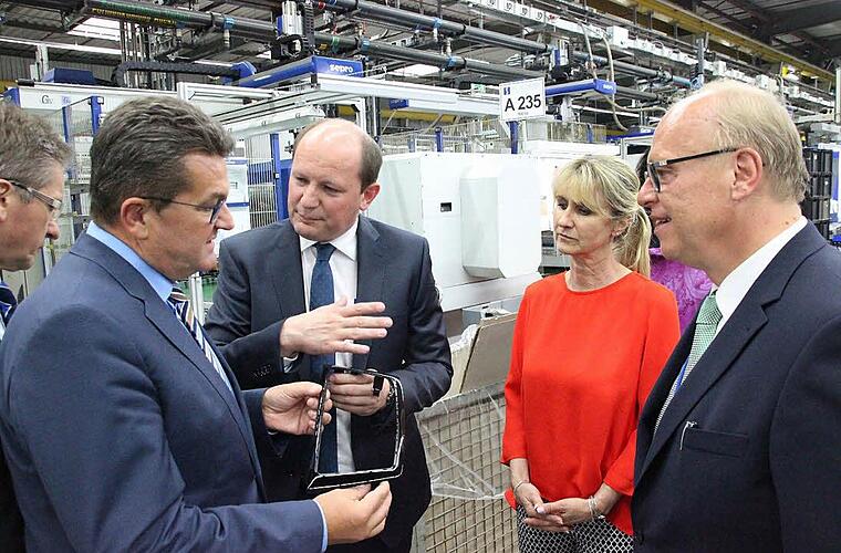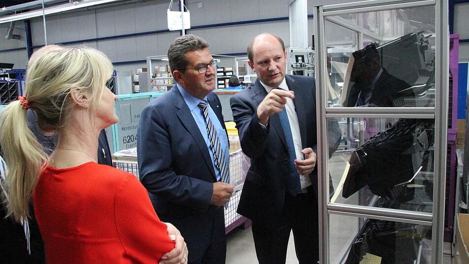 Der Politiker aus München gewann bei einem Rundgang durch das Werk Neuses einen Überblick über die breite Fertigungspalette des großen Automobilzulieferers Dr. Schneider. Technischer Leiter Wolfgang Beer, kaufmännischer Leiter Wilhelm Wirth und Gesellschafterin Sylvia Schmidt erläuterten die verschiedenen Schritte der Fertigung und Montage von Kunststoffteilen für bedeutende Automobilhersteller Europas.