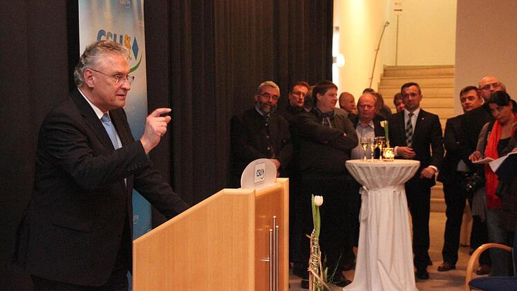 Da war es den meisten auch egal, dass Bundestagsabgeordneter Hans Michelbach noch nicht fertig war mit seinem Grußwort: Als Innenminister Herrmann - wenn auch mit leichter Verspätung - den Saal betrat, gab es kräftigen Applaus. Herrmann sah es gelassen. "Vorher war ich in Kloster Banz. Da hat man mir gesagt, das macht nichts, wenn du zu spät kommst.