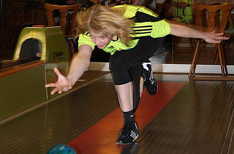 Doch beim Endlauf schien sich ein rabenschwarzer Tag anzubahnen. Auf Bahn 1 machte sie acht Fehler, und die Teilnahme an der Bayerischen Meisterschaft rückte in weite Ferne. "Aber nach dem Wechsel auf Bahn 2 lief es plötzlich", berichtete Meike Weber. Sie absolvierte die 50 Wurf fehlerfrei und räumte jede Menge sehr schwierige Bilder, unter anderem die drei Kegel nach dem "verkehrten Sechser" sowie die Kegel 4 und 5 mit einem Schub: "Meine Kugel streifte den linken Eckkeil und der nahm auch noch den König mit", war sie glücklich über dieses gerade in einer Bahn mit schlanken Kegeln sehr seltene Räumergebnis.