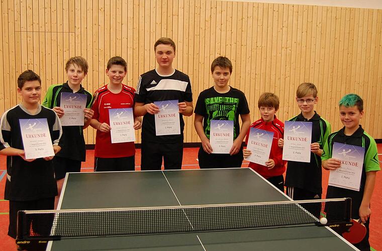 Die beste Beteiligung gab es bei den A-Schülern. Unter den acht Teilnehmern dominierte der Windheimer Luca Löffler mit 7:0 Spielen und 21:0 Sätzen.