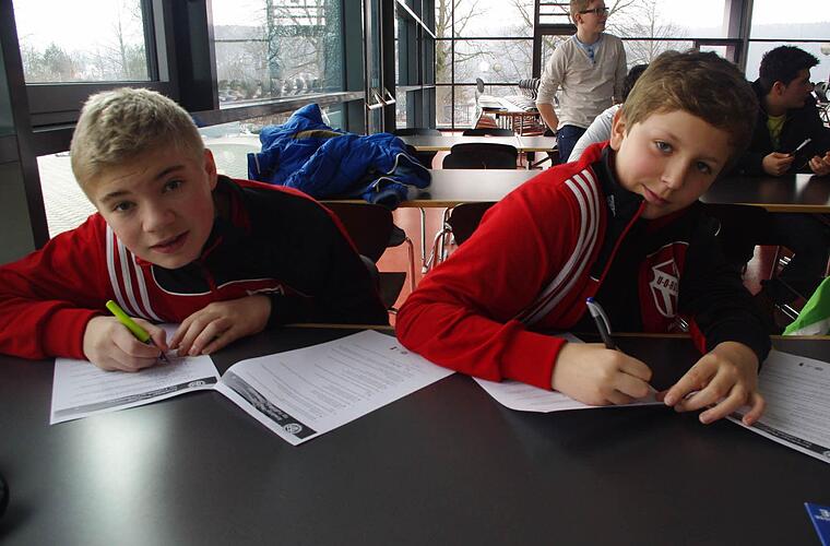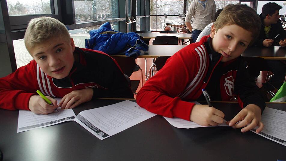 Moritz Tremel und Jonas Klatt brüten über ihren Fragebogen. 30 Fragen müssen sie an diesem Sonntagmorgen in der Mensa des Schulzentrums beantworten. Gefragt wird beispielsweise: Was für einen Freistoß gibt es nach einer Abseitsentscheidung des Schiedsrichters? Wie geht das Spiel weiter, wenn eine Mannschaft ein Tor geschossen hat? Kein Problem für Moritz und Jonas. Die Beiden sind mit ihren zwölf Jahren die "Youngsters" beim Neulings-Lehrgang der Schiedsrichtergruppe Kronach.