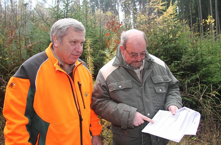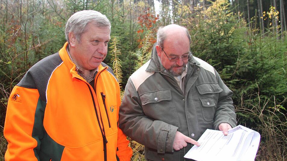 Wildbestand ist in Ordnung Im Wald oberhalb der Holzmühle, zwischen Kulmbach und Kronach - es ist das Revier von Albin Schmidt - ist die Wildpopulation in Ordnung und nimmt nicht überhand. Sogar auf freien Flächen, die ein Sturm kahl geschlagen hat, ist natürliche Verjüngung da. "Hier haben wir auf engstem Raum zehn verschiedene Baumarten und mehr", erklärt Fritz Maier stolz: "Horst Gleißner schaut nicht nur live, ob alles stimmt, sondern studiert auch die Unterlagen.
