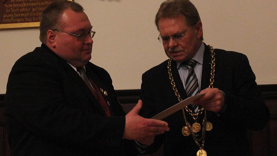 "Er opfert seit 40 Jahren seine Freizeit für die Jugend, für die Musik, für seine Heimatstadt", stellte Beiergrößlein den Vorbildcharakter des Geehrten heraus, der mit Leib und Seele Musiker ist.