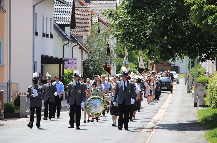 Unter den Klängen des Musikvereins Neukenroth marschierten sechs Schützenvereine aus dem Landkreis und mehrere weitere örtliche Vereine vom Anger zum Schützenhaus. Angeführt wurde der stattliche Festzug von der Schützenkönigin Silvia Reuth, Zweitem Bürgermeister Wolfgang Förtsch, sowie den Marktgemeinderäten. Es folgten die Privilegierte SG 1612 Ludwigsstadt, der SV Friedersdorf, die SG Ebersdorf/L., die SG Rothenkirchen, der KKSV Förtschendorf und mehrere örtliche Vereine.