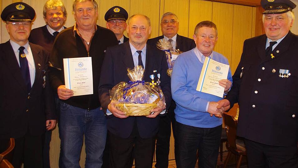 Bei der Krieger- und Soldatenkameradschaft Steinberg wurden Mitglieder ausgezeichnet. Klaus Wallerus hält der Kameradschaft seit vier Jahrzehnten, Reinhold Baierlipp seit 45 Jahren die Treue.