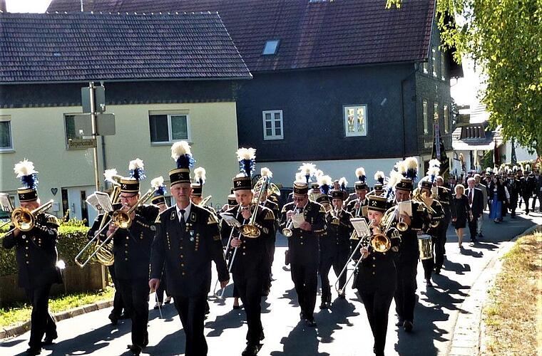Der Sonntag startete mit einer Kirchenparade, angeführt von der Bergmannskapelle Stockheim, die anschließend den Festgottesdienst unter der Stabführung von Matthias Friedrich bereicherte. An der Orgel spielte Sebastian Rauer. Acht Fahnen und Banner der Vereine aus der Großgemeinde schmückten das Gotteshaus.