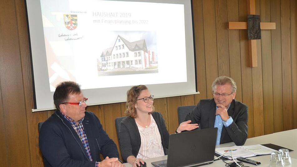 Die Gemeinde Stockheim freut sich über weiteren Schuldenabbau, wie dies von Kämmerin Eva Schießwohl in der Ratssitzung am Montag für den Haushalt 2019 vorgestellt wurde. Der Haushalt für 2019 überschreitet zum vierten Mal in Folge die Zehn-Millionen-Euro-Grenze. Mit einem Gesamtvolumen von 12,3 Millionen Euro weist er eine Steigerung gegenüber 2018 von 1,6 Millionen Euro (15,2 Prozent) aus.