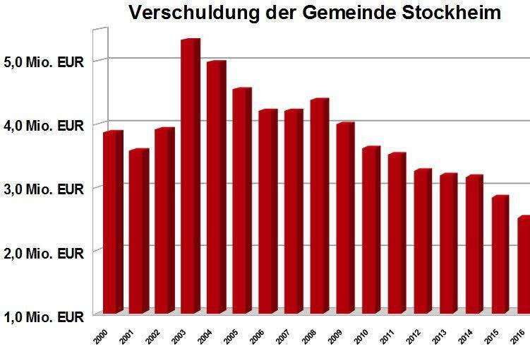 Stockheim baut seit 2009 permanent Schulden ab und liegt bei der pro Kopf-Verschuldung bei 622 Euro - weit unter dem Landesdurchschnitt von Gemeinden vergleichbarer Größe.