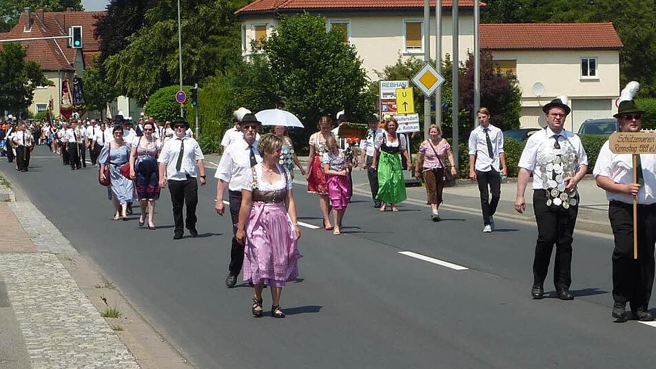 Einige hundert Teilnehmer sorgten am Sonntag bei Kaiserwetter für ein farbenfrohes, fröhliches Bild. Allerdings machte die Hitze - es wurden 39 Grad im Schatten gemessen - den Teilnehmern gehörig zu schaffen. Doch man zeigte tapfer Präsenz, insbesondere die Stockheimer Bergknappen.