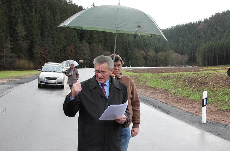 Oswald Marr drückte die Erleichterung aus: "Wir alle sind heilfroh, dass wir diese Straße freigeben können." Die Kosten für das 3150 Meter lange Stück bezifferte er auf 4,6 Millionen Euro. Dazu gibt es 90 Prozent Zuschuss. Insgesamt 435 Meter Stützmauern - die längste davon mit 180 Metern an der Kugelmühle - habe man errichten müssen. 1000 Quadratmeter Felssicherung und der Abtrag der Felsnase seien sehr teuer gewesen. "Teilweise wurde an drei Bauwerken gleichzeitig gebaut", erinnerte der Landrat.