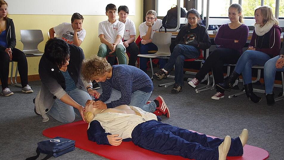 Beim Aktionstag "Schulsanis - bayernweit" zeigten sie ihren Mitschülern der Jahrgangsstufen sechs bis zehn, wie wichtig und gleichzeitig einfach Wiederbelebung ist.