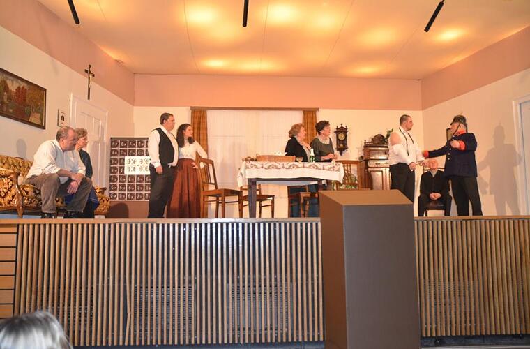 Wieder verstand es die Theatergruppe mit dieser amüsanten Komödie - ein Stück aus der Feder von Hans Schrepfer aus der guten alten Zeit - die Zuschauer zum Lachen zu bringen, bei manchen flossen sogar Tränen vor Lachen. Es ist ein Theaterstück über das Dorfleben auf dem Lande wie es sich um 1900 Im Flößerdorf abgespielt haben könnte. Die Leute sind rechtschaffen, gehen ihrer Arbeit nach und jeder kennt natürlich jeden und weiß über den anderen Bescheid.